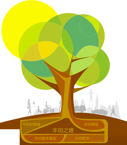 以象征强大自然力量的树木来比喻丰田愿景,主要包含着不断成长,持续繁荣的构想。
