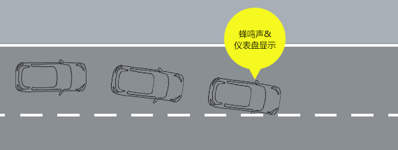 车辆将要偏离车道时,通过蜂鸣声和仪表盘显示提示驾驶员。