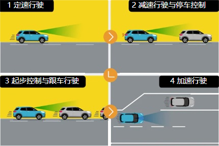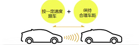 可以探测与前车距离,自动调节车速,保持合理车距;无前车时,保持设定速度行驶。