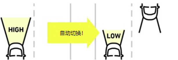 根据对向车灯等前方的亮度,自动进行远、近光调节。