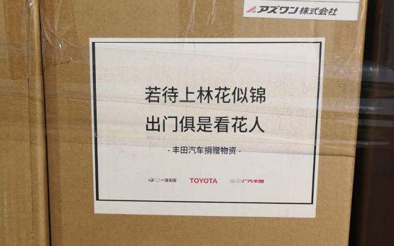 2020年,面对骤然严峻的新型冠状病毒肺炎疫情,丰田第一时间做出反应,1月29日,丰田汽车公司(包括丰田和雷克萨斯品牌)携手丰田汽车(中国)投资有限公司、一汽丰田汽车有限公司和广汽丰田汽车有限公司等在华企业,通过中国红十字基金会等机构捐助资金1,000万元,用于购买医疗用品;同年2月7日,又通过全球采购及物流体系筹集物资,进行了再次捐助,全力支持疫情防控工作。