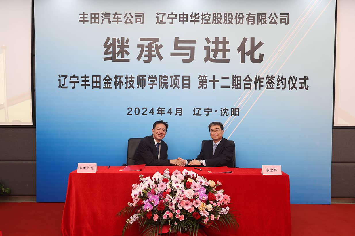 (2024年4月12日,沈阳)今日,辽宁丰田金杯技师学院(以下简称“学院”)项目第12期合作签约仪式举行。丰田汽车公司(以下简称“丰田”)将与学院在此前合作的基础上,继续为中国汽车产业培养并输送优秀技能人才。