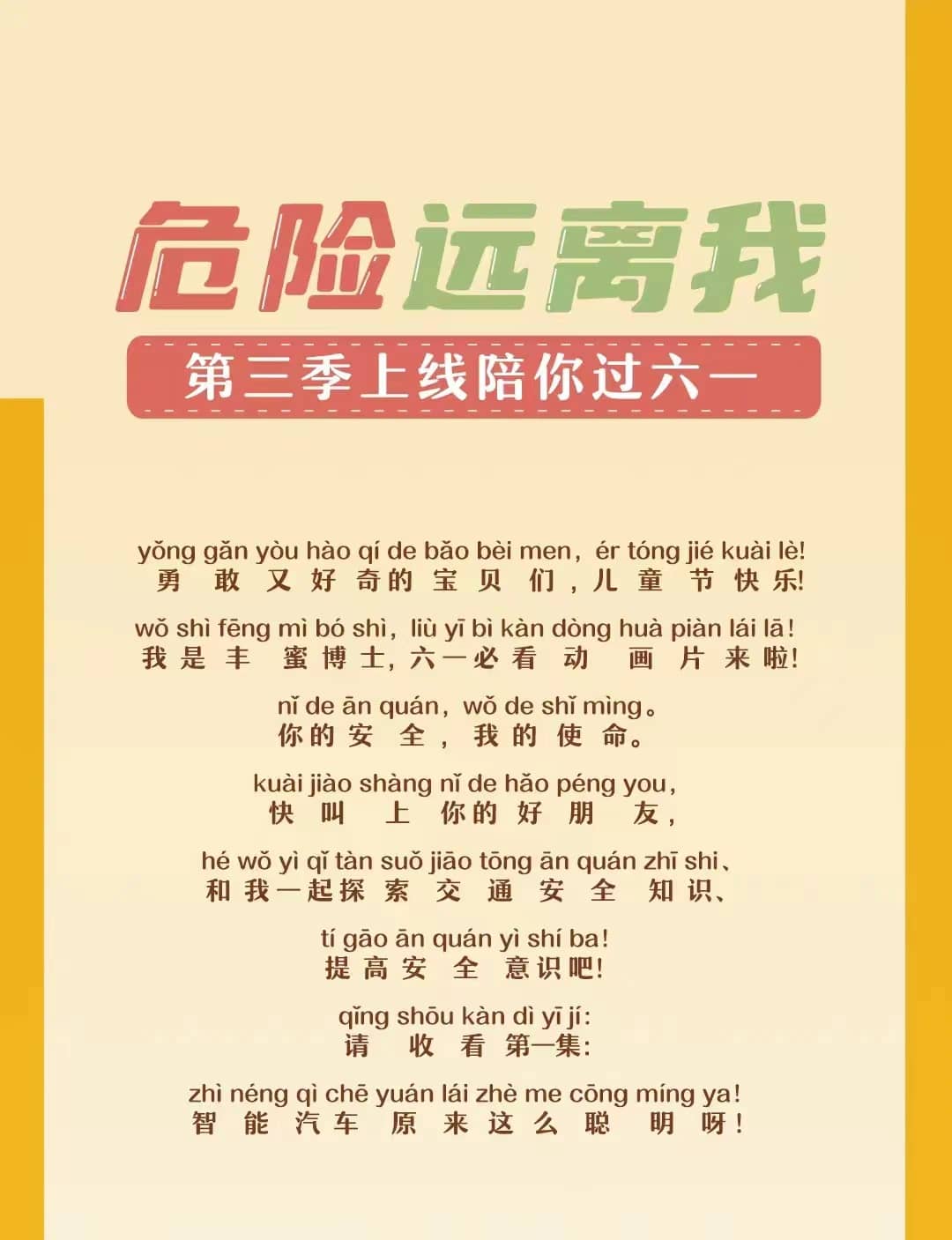 2023年,丰田汽车继续与中国红十字基金会合作,在公安部道路交通安全研究中心的指导下,与中国少年儿童新闻出版总社携手推出多集短小精悍的儿童交通安全系列动画《危险远离我》。