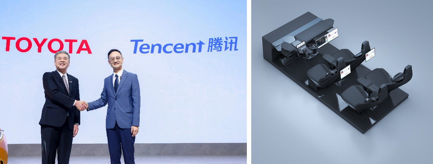 2024年北京车展上,丰田宣布与中国互联网头部企业腾讯开启战略合作伙伴关系,共创“充满多样性与笑容的未来移动出行”,双方将充分发挥各自优势,丰田将结合腾讯的AI大模型、云、数字化生态等优势能力,与丰田的SDV(Software Defined Vehicle,软件定义汽车)等丰富的移动出行相融合,为每位用户打造个性化、多样化的移动出行体验,并将共同创造未来移动出行的新价值。