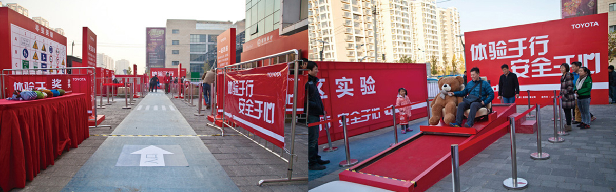 2016年10月,丰田在北京的大型商业中心举办了“让你好好过”趣味交通安全体验活动。丰田寓教于乐,针对醉酒驾驶、儿童安全等问题设置了“保命安全带”、“醉酒迷途”、“儿童安全座椅秋千”及“反光物暗箱测试”等一系列特色体验与互动游戏,此外还带来了“内轮差VR体验”及“闯红灯VR体验”,利用VR技术让消费者更真实地体验事故发生时的状态,受到了热烈欢迎与积极参与,达到了普及交通安全知识,提升公众的交通安全意识的目标。