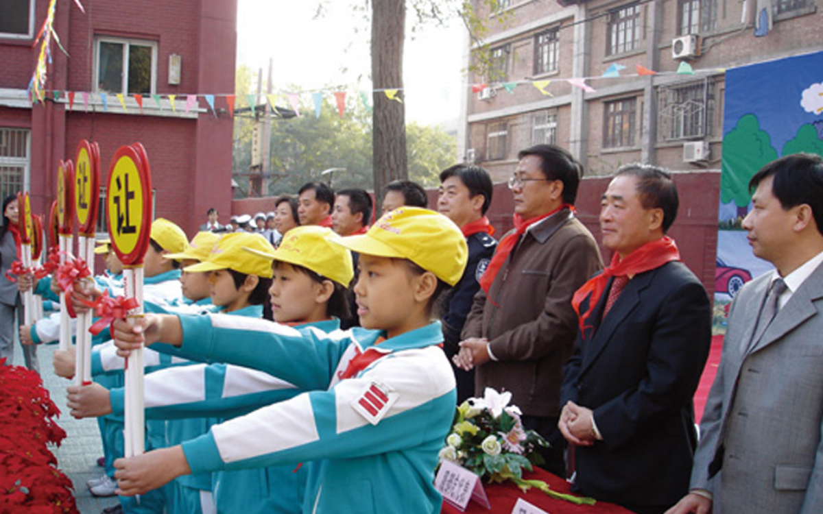 丰田协助北京市公安局公安交通管理局及北京市教育委员会等市政府有关部门,关注小学生的交通安全情况,2005年向北京市51万名小学生赠送了8万个上学放学时使用的“让”字牌。
