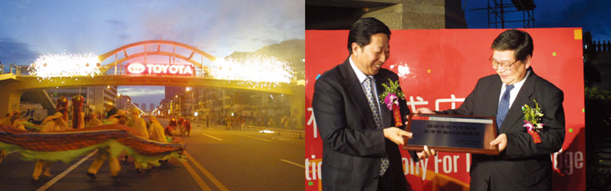 为纪念2002年10月8日威驰轿车下线,丰田向天津市捐赠了一座过街天桥。