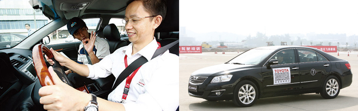 2005年与2006年,丰田汽车公司分别在北京和广州两地、联合当地公安局,面向出租车公司、驾校、政府机关等机构的负责人,实施了丰田安全驾驶培训。聘请日本专业教练,现场教授驾驶基本姿势和急刹车、回避障碍等紧急状态下的正确驾驶方法。