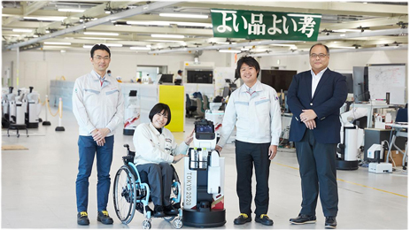 2023年9月,在日本的东京国际展览中心里举办的国际福祉设备展览会上,一位女性轮椅使用者在丰田的展台边,看到正在研发中的轮椅型移动出行工具“JUU”后,双眸闪烁,激动不已地感叹道。