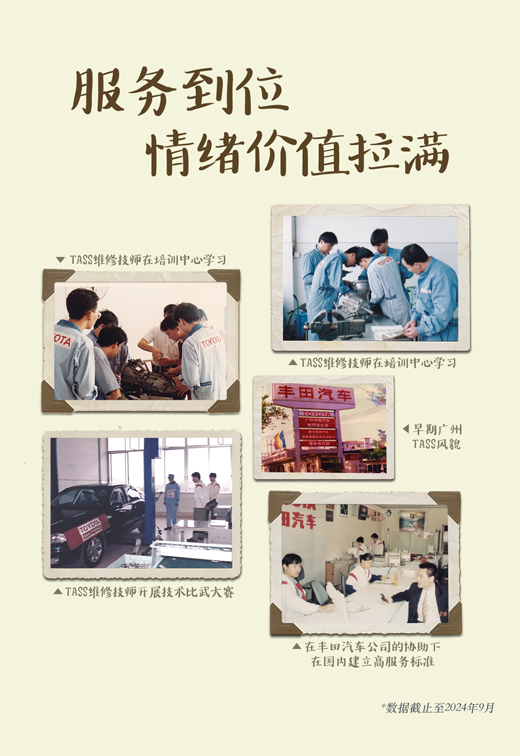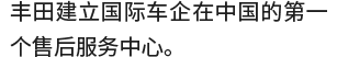 1980年,丰田在北京设立首家丰田汽车维修服务中心(TASS),是外国汽车公司在中国开设的首家售后服务中心,为中国现代汽修行业发展以及中国本土技师培养做出了贡献;也为如今丰田和雷克萨斯品牌在中国的累计约2300万车主提供的高标准维修服务奠定了基础。