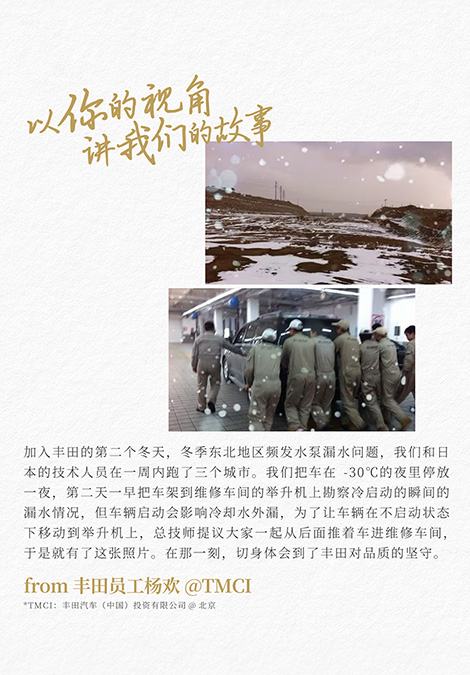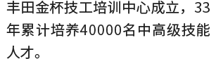 丰田本着“在中国,为中国”的初心,通过不断输出优秀的汽车人才,贡献一己之力。自1990年丰田联合金杯汽车、中国汽车工业总公司在沈阳建立了中国汽车工业丰田金杯技工培训中心,三十多年来共培养40000余名技能人才。