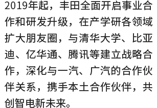 丰田扎根中国,与产学研以及多领域的约40家中国伙伴不断扩大朋友圈,在事业战略、氢能布局、加速智能化、电池回收、无障碍社会建设、社会公益等领域开展深度合作,旨在做当地最好的企业,同时提供更符合中国消费者需求的产品与服务。