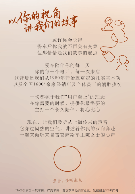 丰田智驾,主打一个“懂”字。丰田打造的智能驾驶与智能座舱懂得用技术与人互联互通,给足驾乘者安全感和安心感。为了打造更懂中国消费者的智能化产品,丰田和中国企业梦幻联动,用前沿科技定义出行方式,让未来触手可及!