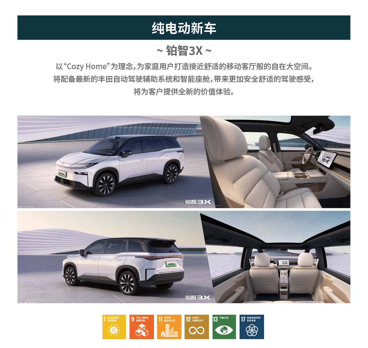 bZ纯电动专属系列现已推出5款车型,覆盖了轿车、SUV、跨界车等更多元的细分市场与应用场景。今后bZ也将持续进化,提供更智能、更符合消费者心意的产品,为中国社会碳中和贡献一份力量。