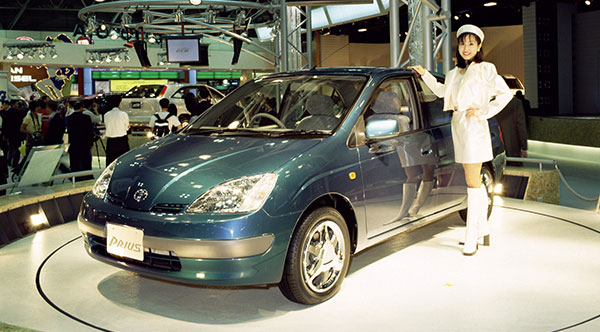 在应对资源和环境问题的同时,尺寸、性能、安全、内部空间、动力源等能成为衡量21世纪汽车的理想指标。于是,丰田在1993年启动了新项目"G21",并提出了将燃油性能提升2倍的远大目标。传统的汽油发动机产生的热量会消失,这将浪费大部分燃料中包含的能量。为了解决这个问题,丰田使用混合动力技术,开发同时拥有汽油发动机和电动机2个动力源的汽车,发挥两者各自的优势,就可以更高效地利用能源。全公司齐心协力,经过了紧锣密鼓的研究、开发与筹备工作,终于在1997年,伴随着"我们赶上了21世纪"的广告语,世界上首款量产HEV"PRIUS普锐斯"诞生了。