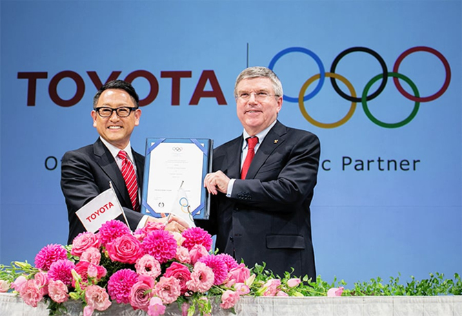 丰田在FIFA世界杯赞助商结束后第二年的2015年与国际奥委会、国际残奥委员会签订了全球合作伙伴协议。作为第一个汽车企业的合作伙伴,从2017年的平昌赛会到2024年的巴黎赛会,共计已经与4个赛会签约,丰田将长期持续支持全球性体育盛典。目前,丰田有橄榄球、硬式棒球、长距离田径、女子篮球、女子垒球、滑冰、沙滩排球等强项目运动队7个,以及27个队+1个团体的一般项目运动队。还有像足球J联盟的名古屋鲸鱼八和男子篮球B联盟的阿尔巴克东京那样的专业化队,此外还雇佣了在职业余运动员、残疾运动员的个人竞技、团体竞技等从业人员,其中很多选手活跃在奥运会、残奥会等各种国际大赛中,并创造出了优异成绩,而且有不少著名选手后来担任了企业中的重要职位。丰田员工佐藤圭太、芦田创两名选手在2016年的里约残奥会中获得了男子400米接力赛铜牌。 丰田公司在成为国际奥委会和IPC全球合作伙伴之后首次迎来的2018年平昌冬奥会中,对来自20个国家的50余名选手作为“丰田团队队员”给予了支援,其中兼职运动员宇野昌磨在男子花样滑冰项目中获得了银牌。 此外,丰田还在该赛会中为森井选手和德国的安德烈·艾斯卡乌选手开发了他们所希望的比赛用具,森井选手后来获得了银牌,而艾斯卡乌选手则获得了2金、3银、1铜共计6枚奖牌的骄人战绩。