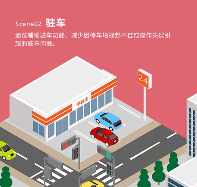 即使在低速情况下,也能探测前车,调节车速;前车停车时,能够保持车距自动停车。