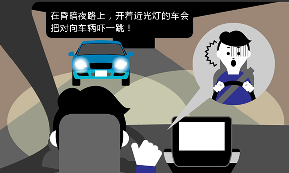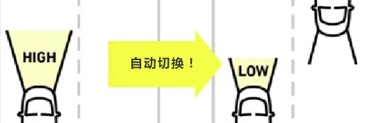 根据对向车灯等前方的亮度,自动进行远、近光调节。