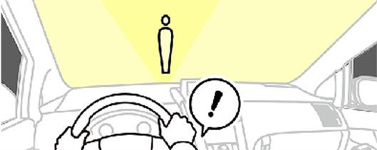 在以约60km/h以上速度行驶过程中,立体摄像头探测车辆即将偏离道路时,系统将通过蜂鸣声和仪表盘显示,向驾驶员作出危险提示。