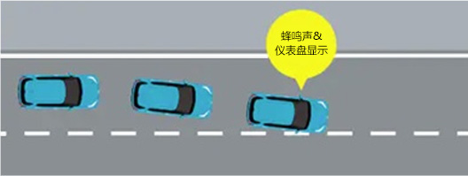 车辆将要偏离车道时,通过蜂鸣声和仪表盘显示提示驾驶员。