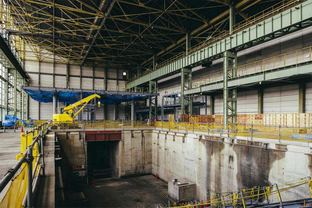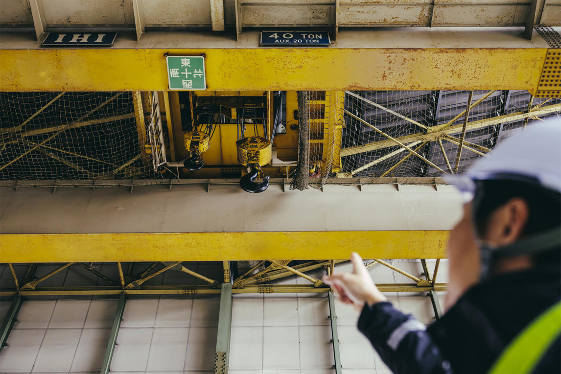 天花板上还悬挂着一台起重机。这台机器作为冲压工厂的标志性设备曾担任着重要使命,负责数十吨重的模具更换工作。
