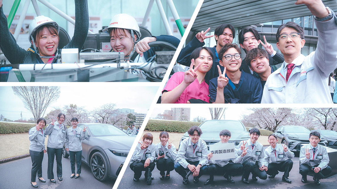 在丰田,有许多“能带给别人微笑”的、有意义的工作。在很多职场当中,大家会鼓励员工“不要害怕失败,勇敢挑战”。首先,请各位好好掌握工作的基础,努力学习,练好技能与专业能力,通过放眼世界来提升感性方面的能力,与同伴们一起发挥自己的长项。