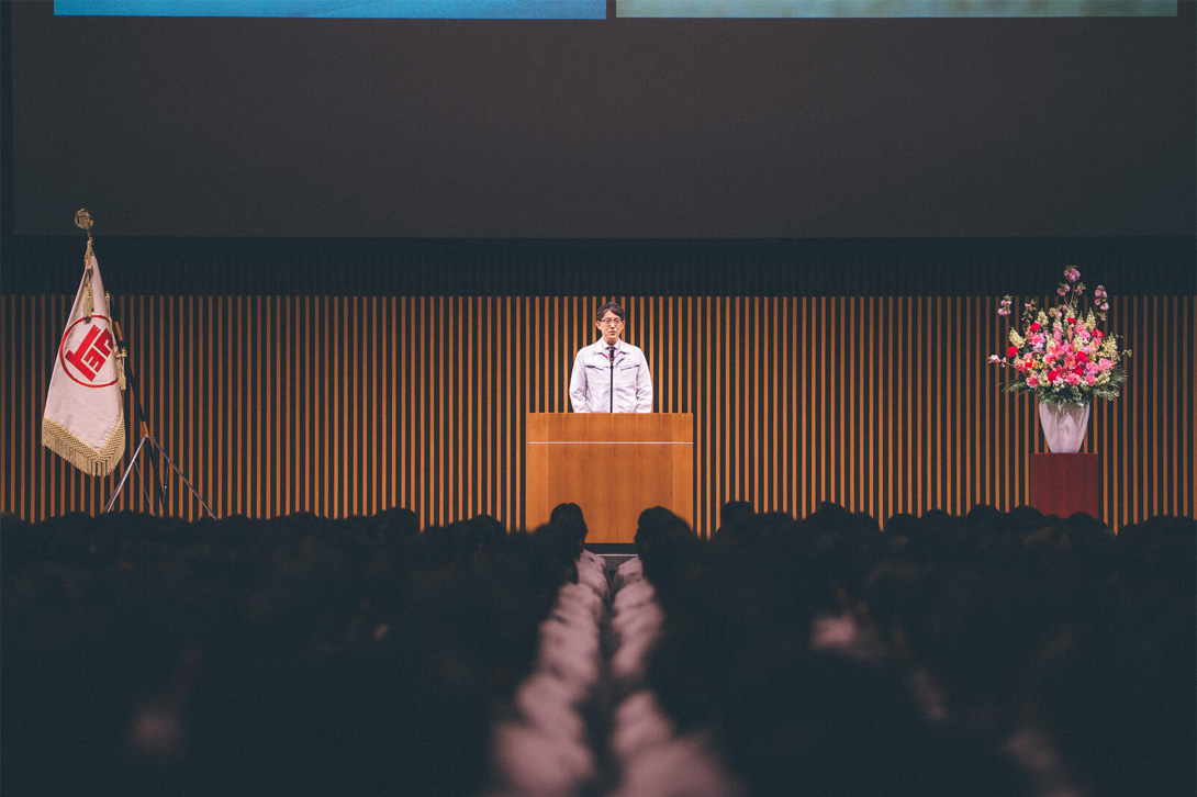 这场入职仪式将成为各位新员工们的起点。对即将开始社会生活的各位来说,今天是非常重要的一天。