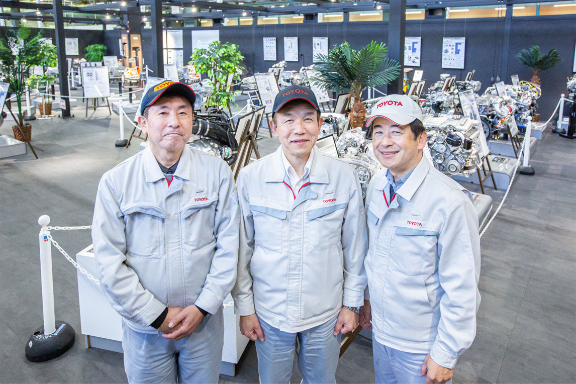 动力总成展馆管理团队:上乡工厂和下山工厂统括部工厂战略室成员(左起)杉山茂高级专家、小室文彦先生、岩冈守首席专家