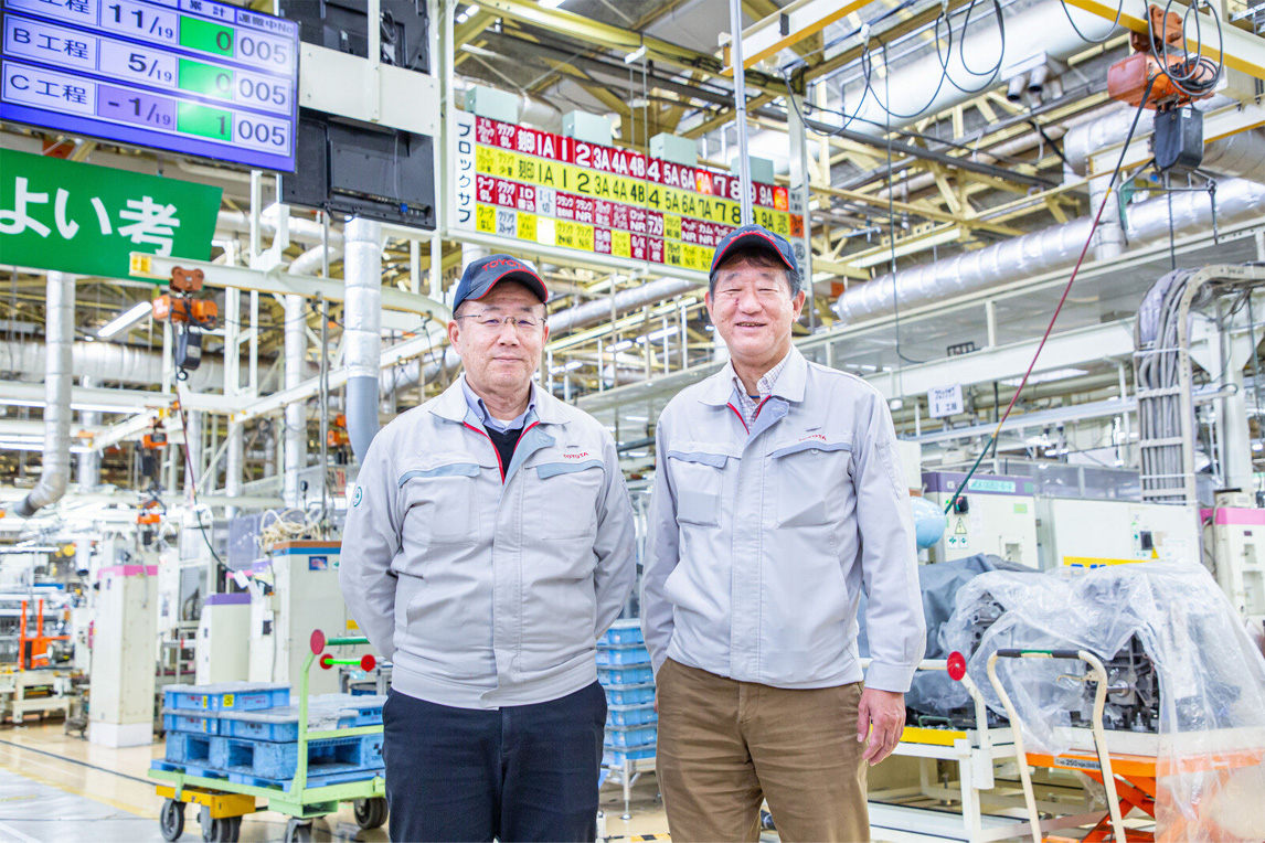 上乡工厂第一发动机制造部第11制造课辻冈清课长(左)与伊藤组长