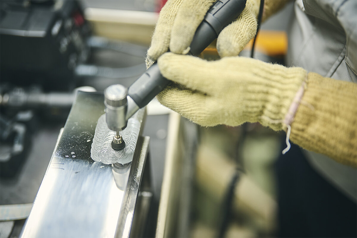使用砂纸打磨后,再用毛毡抛光轮去除微细划痕。