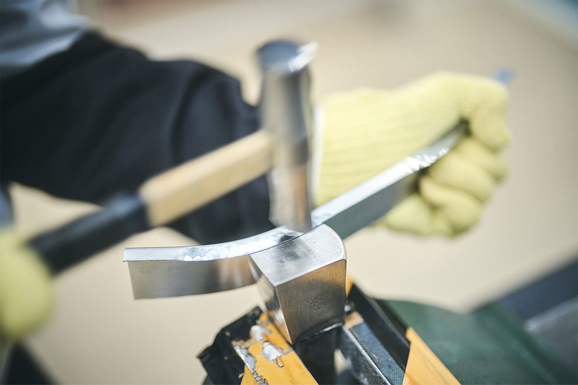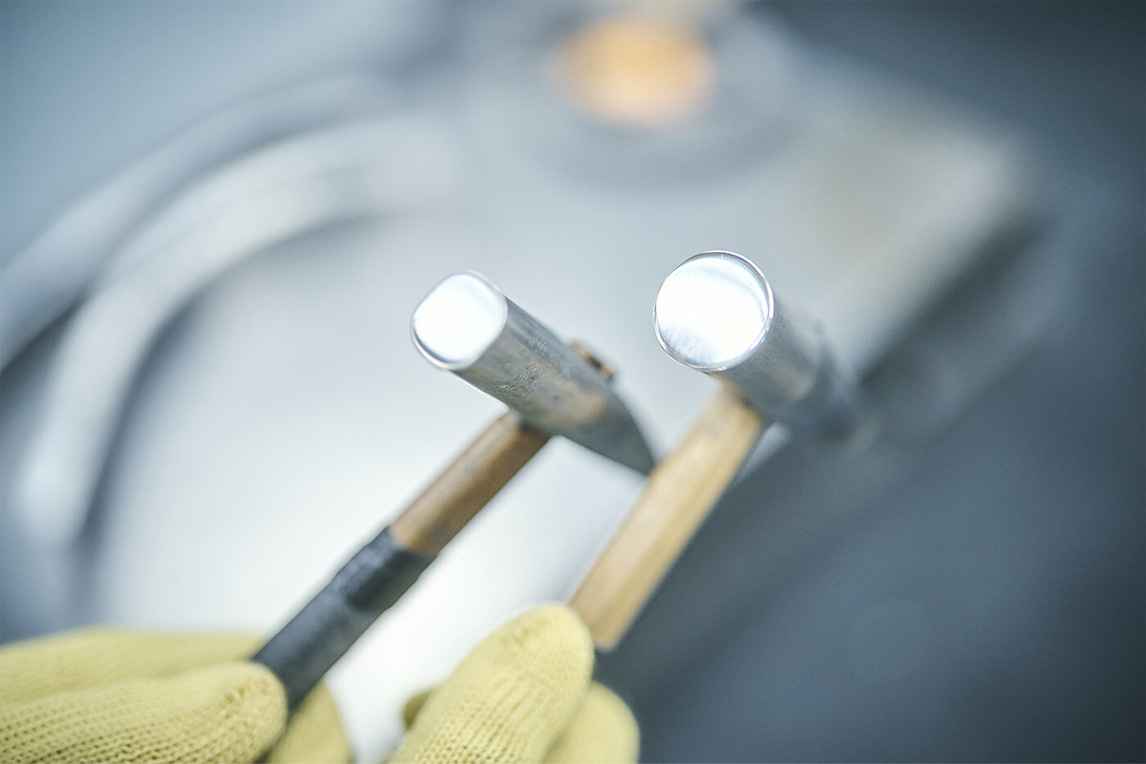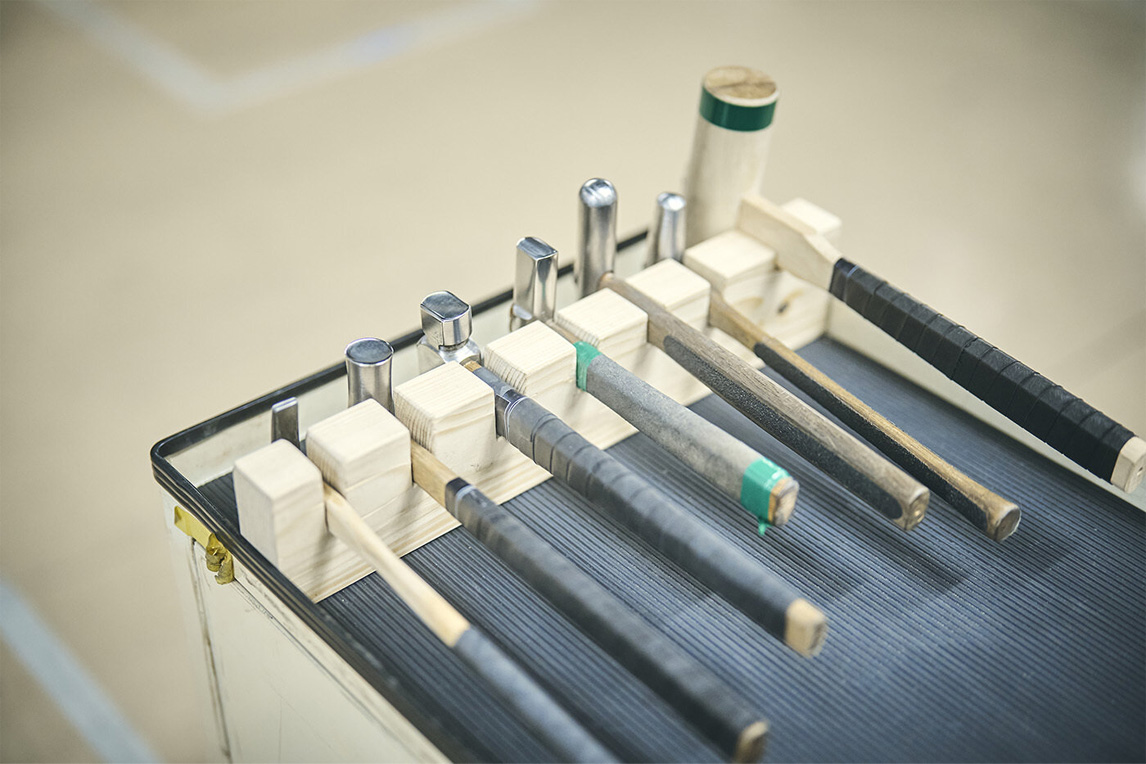 前田的高超技艺离不开他对工具的极致讲究。他所用的锤子是将市售品根据自身情况,精密改造过的“定制品”。