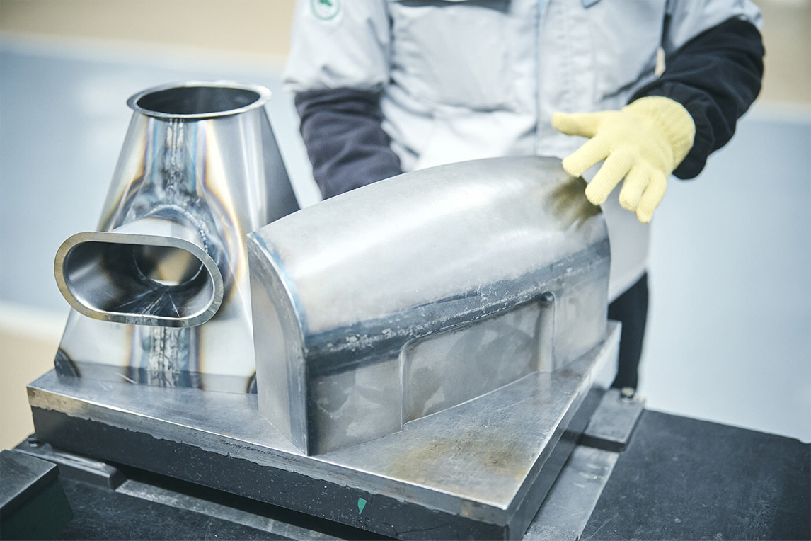 前田掌握的钣金技术主要分为两类:一是“折弯钣金”,以管道为模具,手工将金属板弯成曲面;二是“锤击成型钣金”,通过锤击金属板自由塑造立体造型。