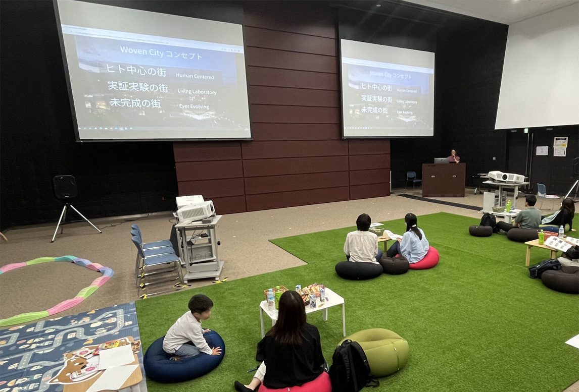 这场景既像野餐,又像开会,奇妙而惬意。其实,这是在5月为Woven City(静冈县裾野市)候选居民举办的一场说明会。