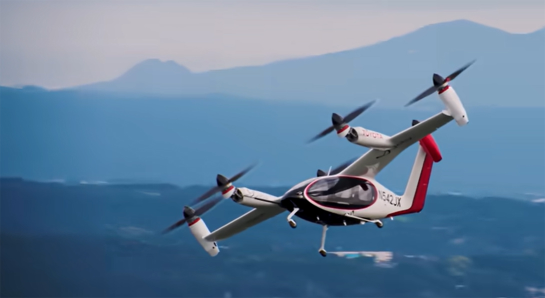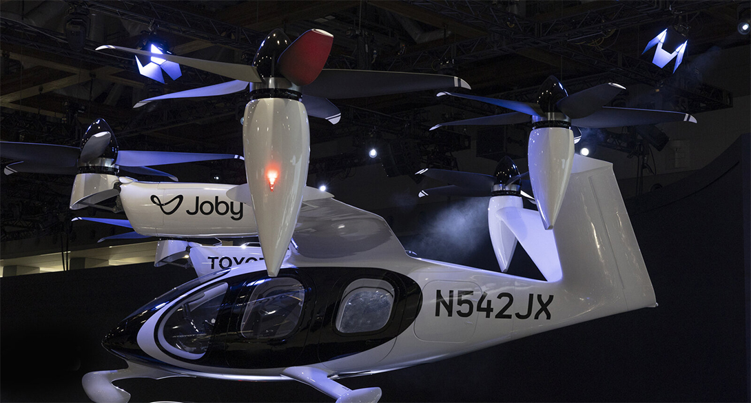 这是丰田与JOBY合作研发的“飞行汽车”—“eVTOL*”。
