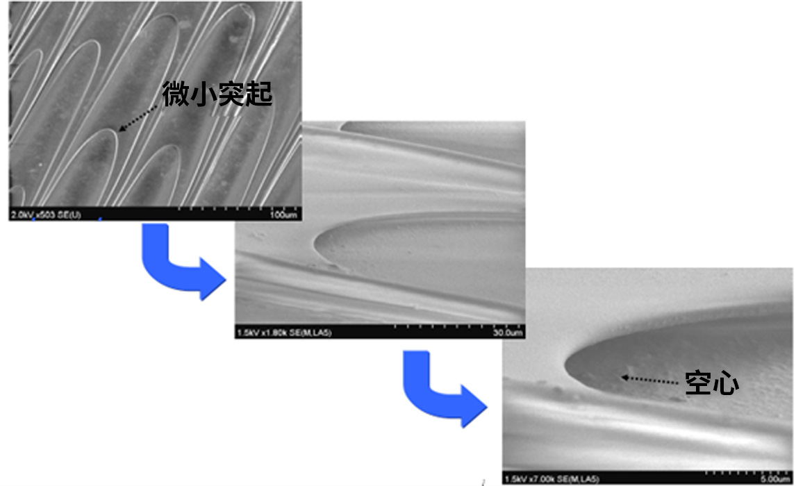 当我们使用电子显微镜认真观察唇部表面时,发现上面有突起。而且,所有的突起都朝向同一个方向。