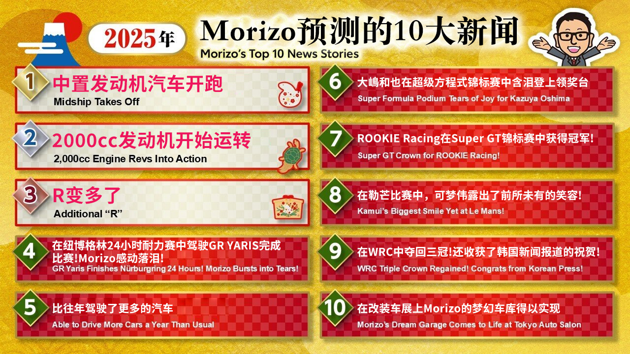首先,两人共同回顾了在上届改装车展上公布的“Morizo预测的十大新闻”。